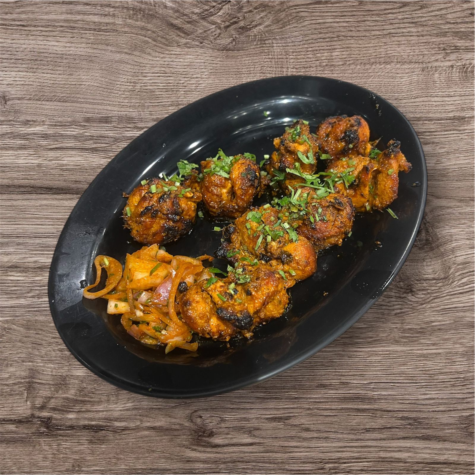 Chicken marinated in yogurt and spices, cooked in clay oven